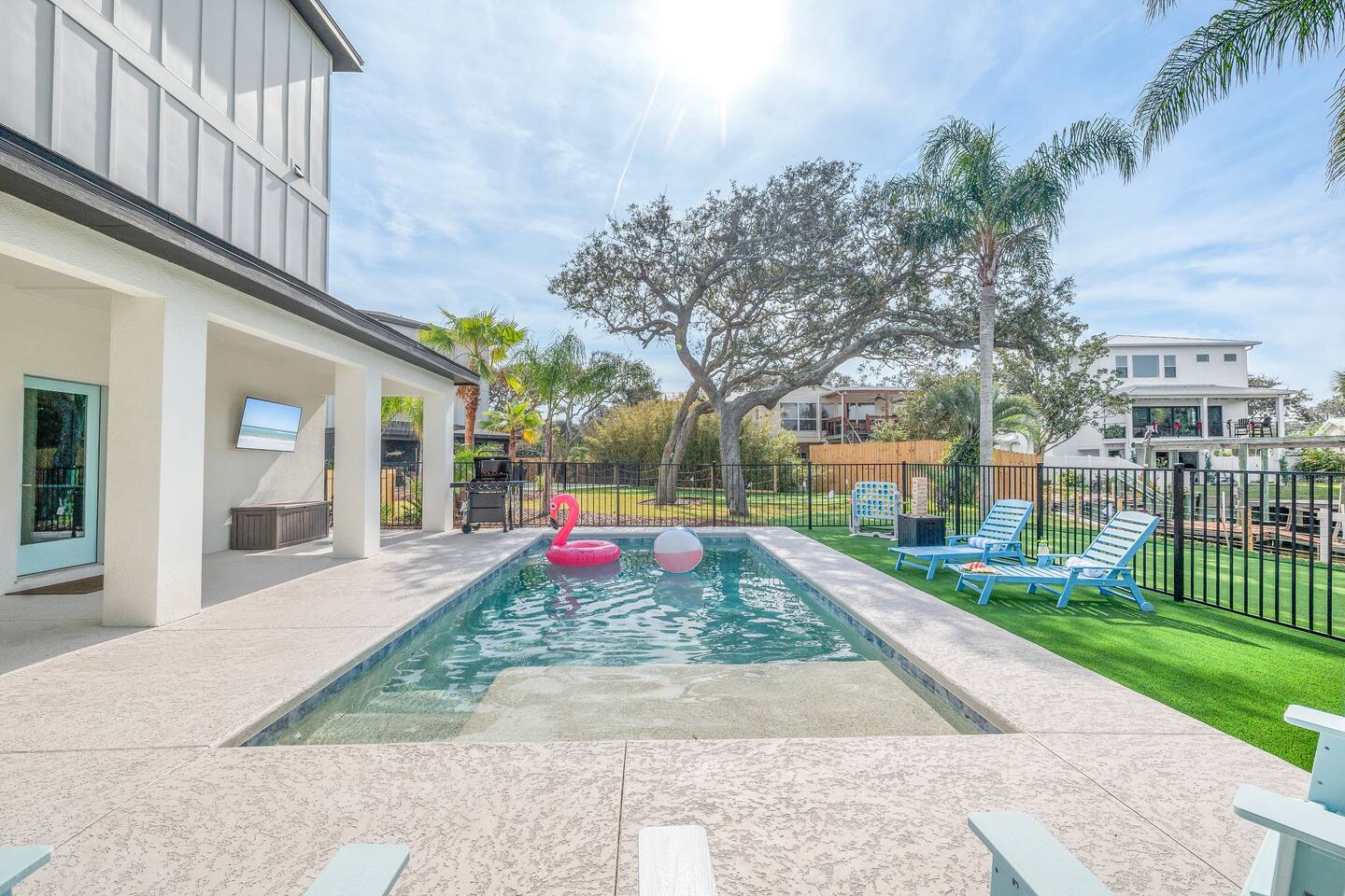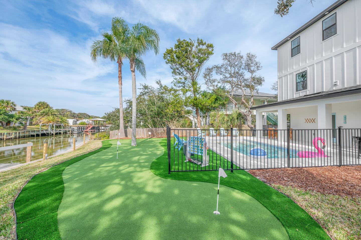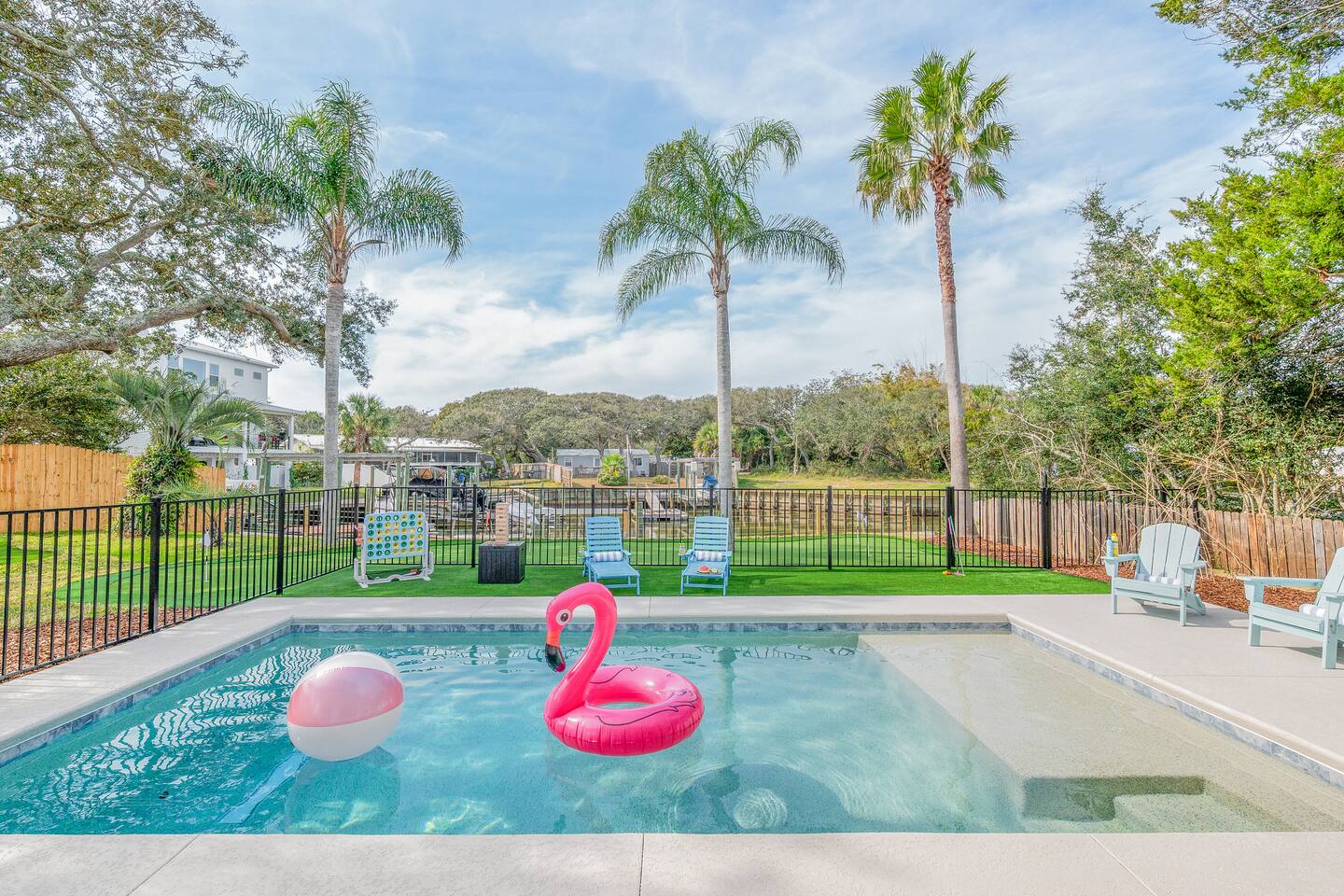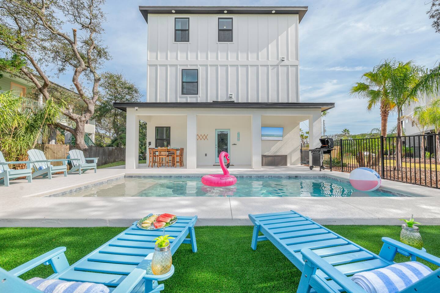 Wake up to ocean breezes & enjoy an easy five minute stroll to Crescent Beach. This home is perfect for relaxing days by the pool, fun evenings with family & friends, & unforgettable beach memories. 🏠 4 Bed 4 Bath 🏖️ Saltwater Pool 🍹 Outdoor Lounge & Grill ⛳ Putt Putt 🐟 Canal Fishing 🏠 Elevator 🍽️ Two Kitchens 🐶 Dog Friendly 👶 Baby Toddler Ready 🏖️ Beach Gear & Games 🌊 Walk to Beach ~5 min 📶Fast Wi Fi 🎲 Indoor Family Games YOUR Property Welcome to your coastal escape just minutes from the shores of Crescent Beach. Starboard Retreat is designed for easygoing beach days, poolside fun, and relaxed nights with the people who matter most. Float in the private saltwater pool, unwind in the outdoor TV lounge, or let the kids enjoy the fenced backyard while you soak up the breeze. Inside, light filled coastal interiors and thoughtful touches create a calm, welcoming atmosphere. Outside, every detail is set up for unforgettable time together, from backyard putt putt to beach gear and outdoor games. Comfortably sleeping up to eight guests, this home was made for connection and lasting memories. Sip your morning coffee on the balcony, grill under the palms at sunset, and settle into the rhythm of coastal living. Your perfect beach getaway starts here. ⸻ ▪️Inside the Retreat▪️ Living Areas • Two generous living spaces perfect for gathering, relaxing, and reconnecting • Smart TVs ideal for movie nights, rainy days, or post beach downtime Kitchen & Dining • Fully stocked main kitchen with stainless steel appliances and island seating • Convenient downstairs kitchenette for poolside snacks and drinks • Well equipped for family dinners or quick meals before heading out Bedrooms • Primary Suite: King bed with private ensuite bathroom • Bedroom 2: Queen bed with serene coastal decor • Bedroom 3: Double bed, cozy and comfortable • Bedroom 4: Full size bunk beds, a hit with kids and teens All bedrooms include plush bedding, smart TVs, and calming details for a restful stay. Bathrooms • Four modern full bathrooms offering privacy and comfort • Primary ensuite with walk in shower and soaking tub • Stocked with shampoo, conditioner, body wash, and soft towels Elevator • Accessible from the 1st through 3rd floors for added convenience. Stairs are also available. ⸻ ▪️Outdoor Paradise▪️ • Private saltwater pool with loungers and pool floats (Pool is NOT heated) • Covered outdoor TV lounge for laid back days and cozy evenings • Backyard mini putt putt course for all ages • BBQ grill for easy outdoor meals • Outdoor shower to rinse off after the beach • Fully fenced yard ideal for kids and dogs • Outdoor games including Jumbo Jenga, Connect Four, boogie boards, beach toys, and umbrella • Yoga mat and resistance bands for your workout routine • Steps from Crescent Beach in a quiet, family friendly neighborhood • Parking for 5 vehicles, 2 in the garage and 3 in the driveway ⸻ ▪️Pet Policy▪️ Dogs are welcome here. Up to two pups of any size are allowed. Please be sure to include them in your reservation details. ⸻ ▪️Family Ready▪️ • Pack n play • Baby gates • Highchair • Kids dinnerware Everything you need for a smooth and stress free family stay. ⸻ ▪️Attention to Detail▪️ ✔ Professionally cleaned before every stay ✔ High speed Wi Fi and smart TVs ✔ Washer, dryer, iron, and ironing board ✔ Premium linens for every guest ✔ Starter supply of essentials ✔ Coffee and basics ready upon arrival ⸻ Your Stay at Starboard Retreat Awaits From sunrise walks on the beach to laughter filled evenings by the pool, Starboard Retreat is the ideal home base for families, groups, and anyone seeking relaxed coastal comfort. Spacious, thoughtfully designed, and just steps from the sand. This is where unforgettable St. Augustine memories are made. Book your stay today and let your beach story begin 🌅 Guest Access You’ll have full, private access to the entire home — no shared spaces, no interruptions. Enjoy the freedom to spread out and make yourself at home across all three levels. Our local team is just a message away if you need anything during your stay. Interaction with Guests You’ll be fully taken care of by Jess and Mike with Triad Escapes Homes, a local husband-and-wife vacation management team who handle all guest communication, support, and logistics during your stay. We’re always just a text or call away if you need anything. While the homeowner, Catrina, loves this home dearly, she has entrusted us to make sure your experience is seamless from start to finish. You’ll receive all check-in details, local tips, and communication through the Airbnb messaging platform for your convenience.