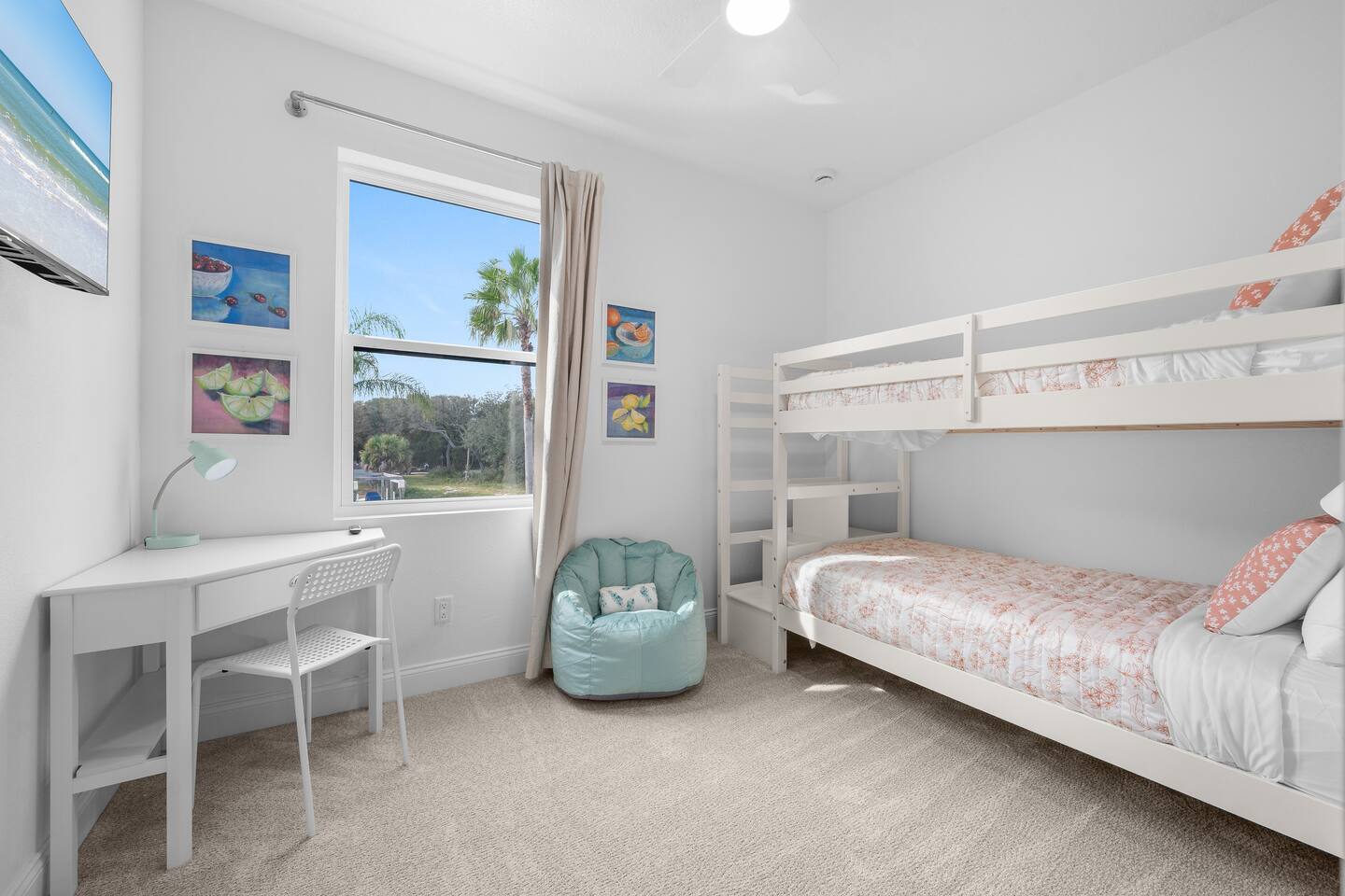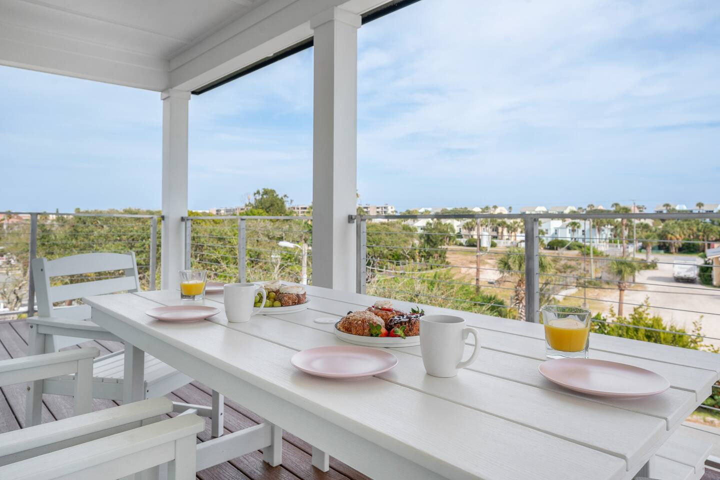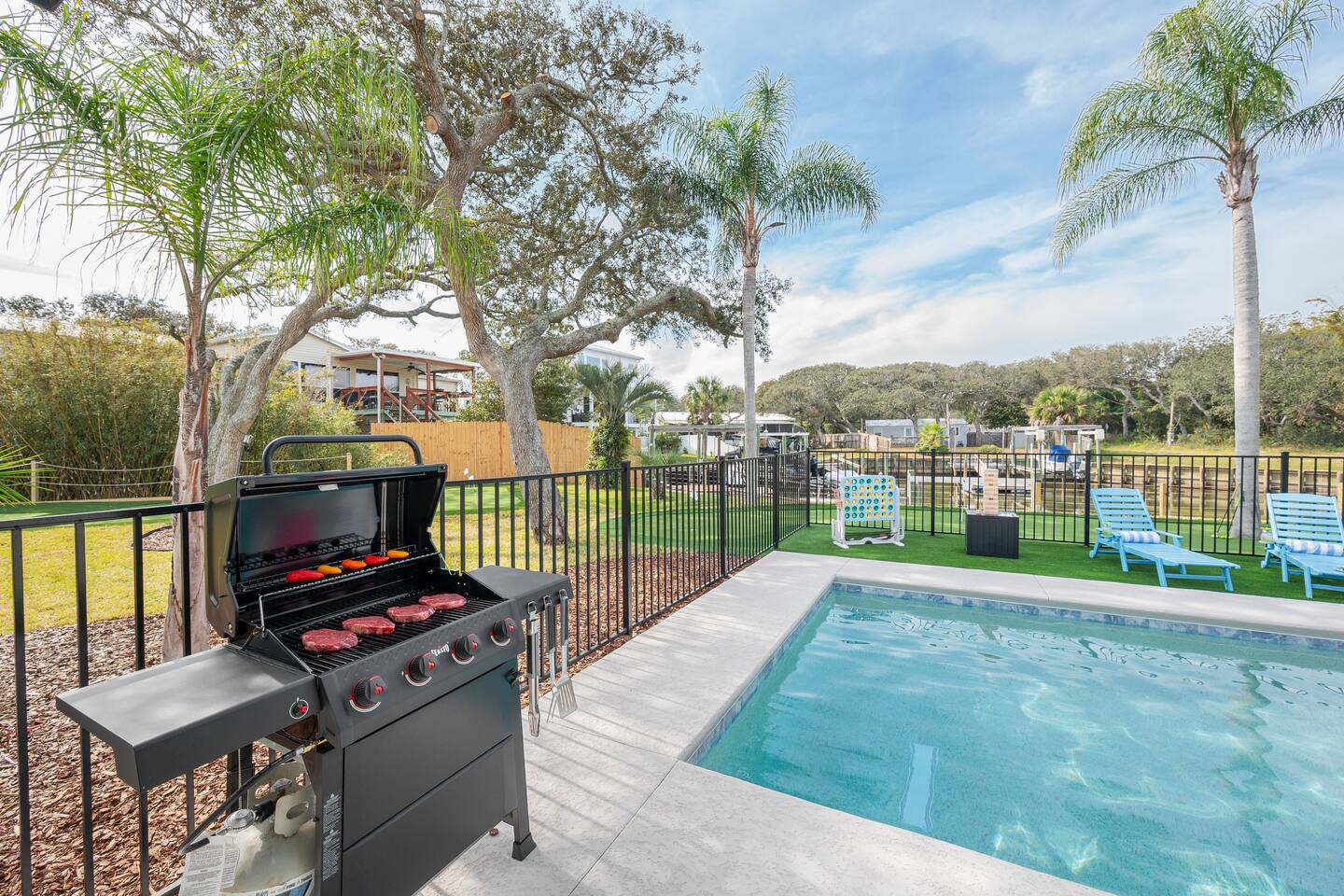 Wake up to ocean breezes & enjoy an easy five minute stroll to Crescent Beach. This home is perfect for relaxing days by the pool, fun evenings with family & friends, & unforgettable beach memories. 🏠 4 Bed 4 Bath 🏖️ Saltwater Pool 🍹 Outdoor Lounge & Grill ⛳ Putt Putt 🐟 Canal Fishing 🏠 Elevator 🍽️ Two Kitchens 🐶 Dog Friendly 👶 Baby Toddler Ready 🏖️ Beach Gear & Games 🌊 Walk to Beach ~5 min 📶Fast Wi Fi 🎲 Indoor Family Games YOUR Property Welcome to your coastal escape just minutes from the shores of Crescent Beach. Starboard Retreat is designed for easygoing beach days, poolside fun, and relaxed nights with the people who matter most. Float in the private saltwater pool, unwind in the outdoor TV lounge, or let the kids enjoy the fenced backyard while you soak up the breeze. Inside, light filled coastal interiors and thoughtful touches create a calm, welcoming atmosphere. Outside, every detail is set up for unforgettable time together, from backyard putt putt to beach gear and outdoor games. Comfortably sleeping up to eight guests, this home was made for connection and lasting memories. Sip your morning coffee on the balcony, grill under the palms at sunset, and settle into the rhythm of coastal living. Your perfect beach getaway starts here. ⸻ ▪️Inside the Retreat▪️ Living Areas • Two generous living spaces perfect for gathering, relaxing, and reconnecting • Smart TVs ideal for movie nights, rainy days, or post beach downtime Kitchen & Dining • Fully stocked main kitchen with stainless steel appliances and island seating • Convenient downstairs kitchenette for poolside snacks and drinks • Well equipped for family dinners or quick meals before heading out Bedrooms • Primary Suite: King bed with private ensuite bathroom • Bedroom 2: Queen bed with serene coastal decor • Bedroom 3: Double bed, cozy and comfortable • Bedroom 4: Full size bunk beds, a hit with kids and teens All bedrooms include plush bedding, smart TVs, and calming details for a restful stay. Bathrooms • Four modern full bathrooms offering privacy and comfort • Primary ensuite with walk in shower and soaking tub • Stocked with shampoo, conditioner, body wash, and soft towels Elevator • Accessible from the 1st through 3rd floors for added convenience. Stairs are also available. ⸻ ▪️Outdoor Paradise▪️ • Private saltwater pool with loungers and pool floats (Pool is NOT heated) • Covered outdoor TV lounge for laid back days and cozy evenings • Backyard mini putt putt course for all ages • BBQ grill for easy outdoor meals • Outdoor shower to rinse off after the beach • Fully fenced yard ideal for kids and dogs • Outdoor games including Jumbo Jenga, Connect Four, boogie boards, beach toys, and umbrella • Yoga mat and resistance bands for your workout routine • Steps from Crescent Beach in a quiet, family friendly neighborhood • Parking for 5 vehicles, 2 in the garage and 3 in the driveway ⸻ ▪️Pet Policy▪️ Dogs are welcome here. Up to two pups of any size are allowed. Please be sure to include them in your reservation details. ⸻ ▪️Family Ready▪️ • Pack n play • Baby gates • Highchair • Kids dinnerware Everything you need for a smooth and stress free family stay. ⸻ ▪️Attention to Detail▪️ ✔ Professionally cleaned before every stay ✔ High speed Wi Fi and smart TVs ✔ Washer, dryer, iron, and ironing board ✔ Premium linens for every guest ✔ Starter supply of essentials ✔ Coffee and basics ready upon arrival ⸻ Your Stay at Starboard Retreat Awaits From sunrise walks on the beach to laughter filled evenings by the pool, Starboard Retreat is the ideal home base for families, groups, and anyone seeking relaxed coastal comfort. Spacious, thoughtfully designed, and just steps from the sand. This is where unforgettable St. Augustine memories are made. Book your stay today and let your beach story begin 🌅 Guest Access You’ll have full, private access to the entire home — no shared spaces, no interruptions. Enjoy the freedom to spread out and make yourself at home across all three levels. Our local team is just a message away if you need anything during your stay. Interaction with Guests You’ll be fully taken care of by Jess and Mike with Triad Escapes Homes, a local husband-and-wife vacation management team who handle all guest communication, support, and logistics during your stay. We’re always just a text or call away if you need anything. While the homeowner, Catrina, loves this home dearly, she has entrusted us to make sure your experience is seamless from start to finish. You’ll receive all check-in details, local tips, and communication through the Airbnb messaging platform for your convenience.