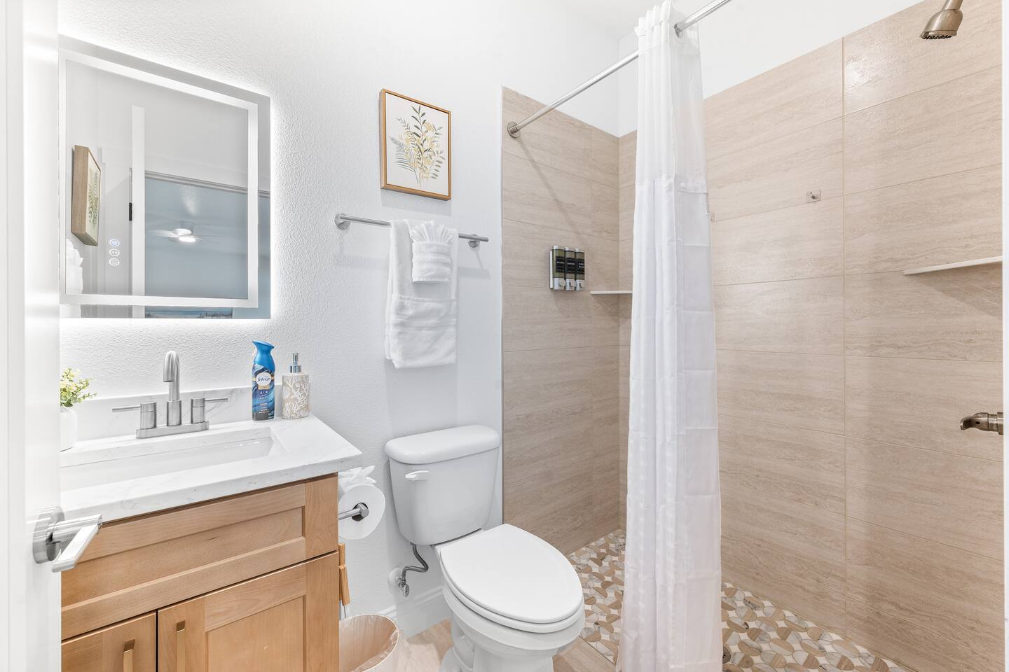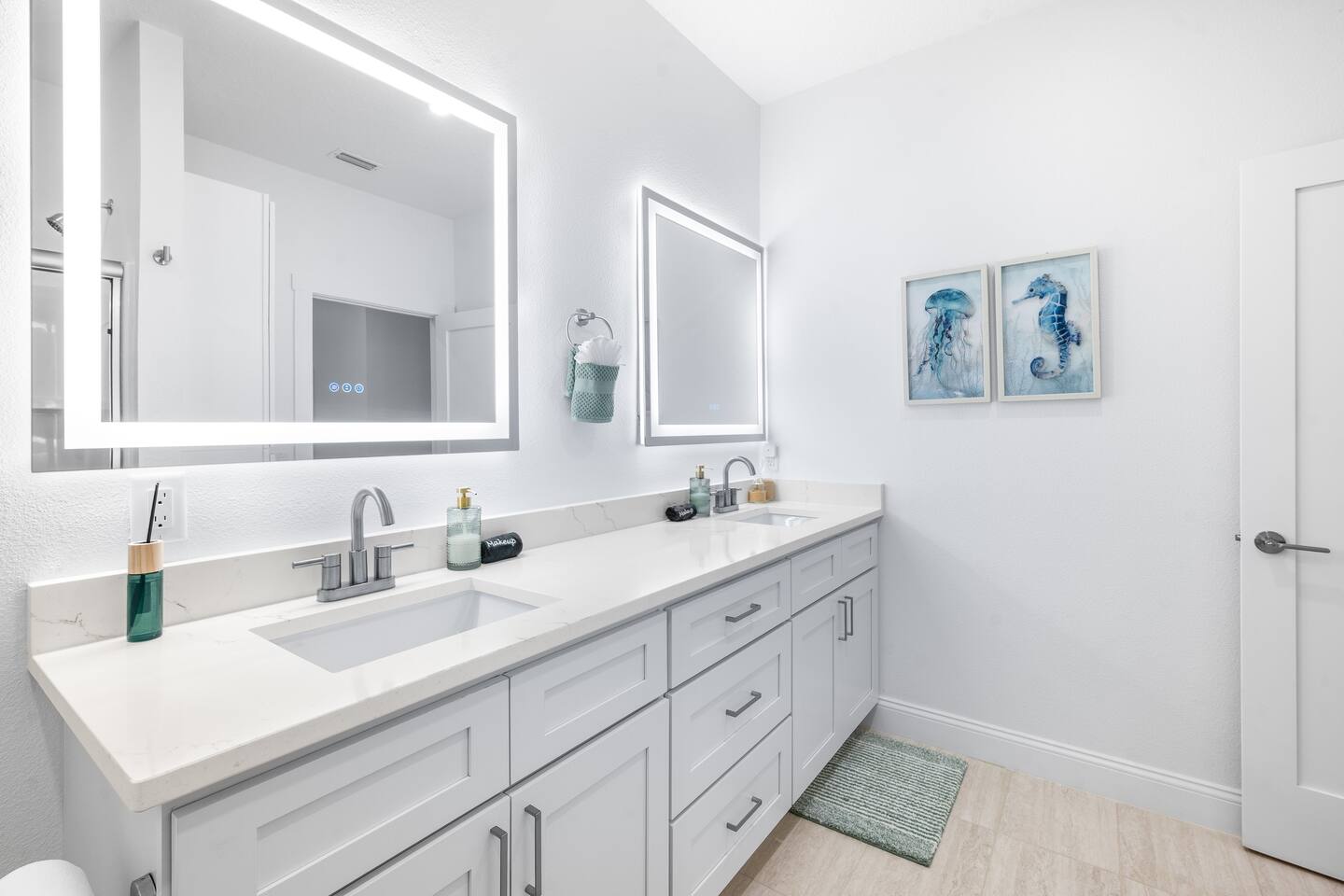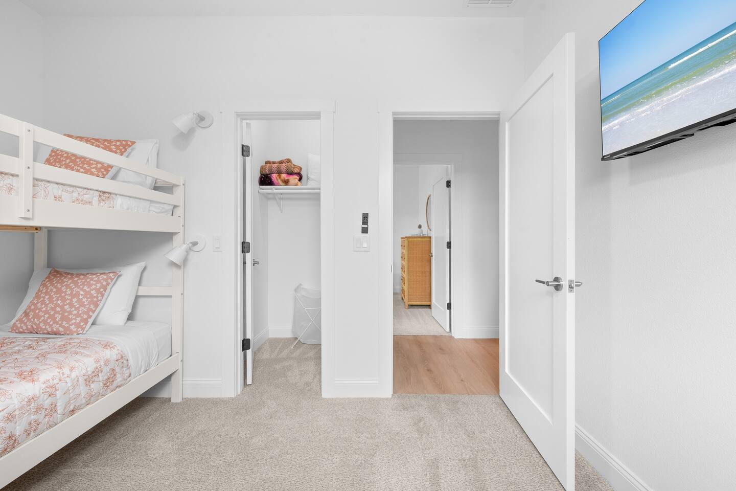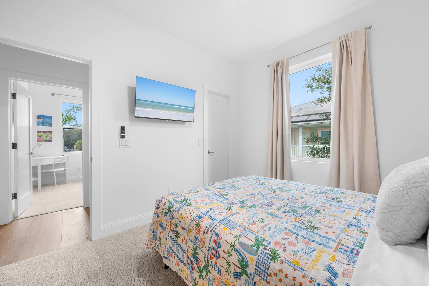 Wake up to ocean breezes & enjoy an easy five minute stroll to Crescent Beach. This home is perfect for relaxing days by the pool, fun evenings with family & friends, & unforgettable beach memories. 🏠 4 Bed 4 Bath 🏖️ Saltwater Pool 🍹 Outdoor Lounge & Grill ⛳ Putt Putt 🐟 Canal Fishing 🏠 Elevator 🍽️ Two Kitchens 🐶 Dog Friendly 👶 Baby Toddler Ready 🏖️ Beach Gear & Games 🌊 Walk to Beach ~5 min 📶Fast Wi Fi 🎲 Indoor Family Games YOUR Property Welcome to your coastal escape just minutes from the shores of Crescent Beach. Starboard Retreat is designed for easygoing beach days, poolside fun, and relaxed nights with the people who matter most. Float in the private saltwater pool, unwind in the outdoor TV lounge, or let the kids enjoy the fenced backyard while you soak up the breeze. Inside, light filled coastal interiors and thoughtful touches create a calm, welcoming atmosphere. Outside, every detail is set up for unforgettable time together, from backyard putt putt to beach gear and outdoor games. Comfortably sleeping up to eight guests, this home was made for connection and lasting memories. Sip your morning coffee on the balcony, grill under the palms at sunset, and settle into the rhythm of coastal living. Your perfect beach getaway starts here. ⸻ ▪️Inside the Retreat▪️ Living Areas • Two generous living spaces perfect for gathering, relaxing, and reconnecting • Smart TVs ideal for movie nights, rainy days, or post beach downtime Kitchen & Dining • Fully stocked main kitchen with stainless steel appliances and island seating • Convenient downstairs kitchenette for poolside snacks and drinks • Well equipped for family dinners or quick meals before heading out Bedrooms • Primary Suite: King bed with private ensuite bathroom • Bedroom 2: Queen bed with serene coastal decor • Bedroom 3: Double bed, cozy and comfortable • Bedroom 4: Full size bunk beds, a hit with kids and teens All bedrooms include plush bedding, smart TVs, and calming details for a restful stay. Bathrooms • Four modern full bathrooms offering privacy and comfort • Primary ensuite with walk in shower and soaking tub • Stocked with shampoo, conditioner, body wash, and soft towels Elevator • Accessible from the 1st through 3rd floors for added convenience. Stairs are also available. ⸻ ▪️Outdoor Paradise▪️ • Private saltwater pool with loungers and pool floats (Pool is NOT heated) • Covered outdoor TV lounge for laid back days and cozy evenings • Backyard mini putt putt course for all ages • BBQ grill for easy outdoor meals • Outdoor shower to rinse off after the beach • Fully fenced yard ideal for kids and dogs • Outdoor games including Jumbo Jenga, Connect Four, boogie boards, beach toys, and umbrella • Yoga mat and resistance bands for your workout routine • Steps from Crescent Beach in a quiet, family friendly neighborhood • Parking for 5 vehicles, 2 in the garage and 3 in the driveway ⸻ ▪️Pet Policy▪️ Dogs are welcome here. Up to two pups of any size are allowed. Please be sure to include them in your reservation details. ⸻ ▪️Family Ready▪️ • Pack n play • Baby gates • Highchair • Kids dinnerware Everything you need for a smooth and stress free family stay. ⸻ ▪️Attention to Detail▪️ ✔ Professionally cleaned before every stay ✔ High speed Wi Fi and smart TVs ✔ Washer, dryer, iron, and ironing board ✔ Premium linens for every guest ✔ Starter supply of essentials ✔ Coffee and basics ready upon arrival ⸻ Your Stay at Starboard Retreat Awaits From sunrise walks on the beach to laughter filled evenings by the pool, Starboard Retreat is the ideal home base for families, groups, and anyone seeking relaxed coastal comfort. Spacious, thoughtfully designed, and just steps from the sand. This is where unforgettable St. Augustine memories are made. Book your stay today and let your beach story begin 🌅 Guest Access You’ll have full, private access to the entire home — no shared spaces, no interruptions. Enjoy the freedom to spread out and make yourself at home across all three levels. Our local team is just a message away if you need anything during your stay. Interaction with Guests You’ll be fully taken care of by Jess and Mike with Triad Escapes Homes, a local husband-and-wife vacation management team who handle all guest communication, support, and logistics during your stay. We’re always just a text or call away if you need anything. While the homeowner, Catrina, loves this home dearly, she has entrusted us to make sure your experience is seamless from start to finish. You’ll receive all check-in details, local tips, and communication through the Airbnb messaging platform for your convenience.