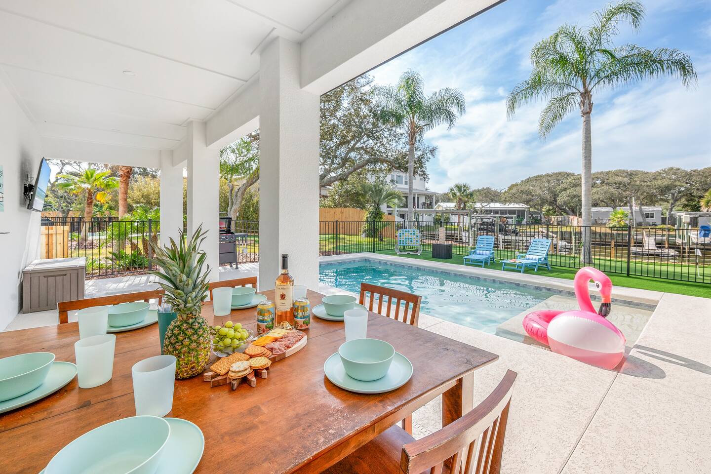 🐚 Be among the first to stay! The Starboard Retreat is brand new and ready to impress! The home is sparkling clean, thoughtfully designed, and fully guest-ready. • The saltwater pool is not heated • Pet friendly with pre-approval (up to 2 dogs, any size — please include pet info when booking) • Crescent Beach access is just a short stroll away • Beach chairs, towels, pool floats, and starter amenities are provided • High-speed Wi-Fi throughout the home • Pack ’n play, baby gates, and a highchair are available for families Every detail has been considered to ensure a seamless, comfortable stay — simply arrive, unwind, and enjoy your private coastal escape.
