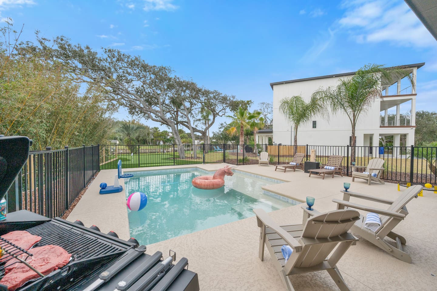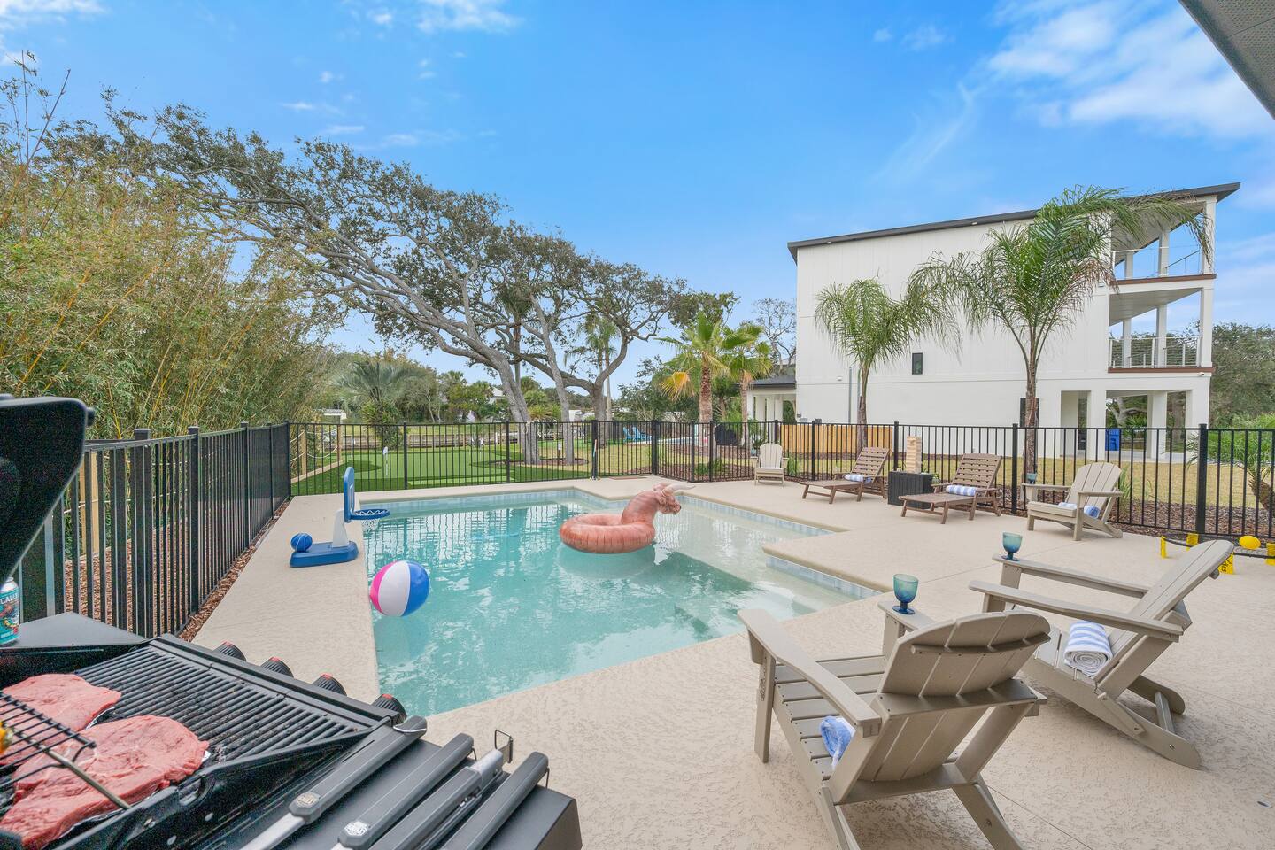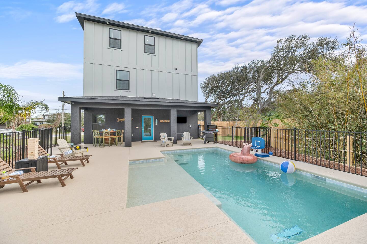 Start your mornings with salty ocean air and a quick five minute walk to Crescent Beach. Designed for laid back pool days, fun filled nights, and effortless beach living with family and friends. 🏠 4 Bed 4 Bath 🏖️ Private Saltwater Pool 🍹 Outdoor Lounge + Grill ⛳ Backyard Putt Putt 🐟 Canal Fishing 🏠 Elevator Access 🍽️ Two Kitchens 🐶 Dog Friendly 👶 Baby / Toddler Ready 🏖️ Beach Gear + Games 📶 Fast Wi Fi 🎲 Indoor Family Games Welcome to your coastal sanctuary, just moments from beautiful Crescent Beach. Portside Retreat blends comfort, fun, and effortless relaxation — whether you’re floating in the private saltwater pool, lounging in the outdoor TV area, or letting the kids run free in the fenced backyard. Inside, bright coastal design and thoughtful details create an inviting, easygoing vibe. Outside, you’ll find everything you need for unforgettable days in the sun — mini putt-putt challenges, beach gear, outdoor games, and plenty of space to gather. With room for up to ten guests, this home was built for memory-making. Whether you’re sipping morning coffee on the balcony or grilling under the palms at sunset, this is where your perfect beach vacation begins. ⸻ ▪️Inside the Retreat▪️ Living Areas • Two spacious living rooms designed for connection and comfort • Smart TVs for movies, game nights, or unwinding after the beach • Queen sleeper sofa downstairs adds extra sleeping space Kitchen & Dining • Fully stocked main kitchen with stainless appliances and island seating • Well-equipped kitchenette downstairs for poolside snacks and drinks • Everything you need to prepare family meals or quick bites before heading out Bedrooms • Primary Suite: King bed with ensuite bathroom • Bedroom 2: Queen bed, calming coastal style • Bedroom 3: Double bed, cozy and serene • Bedroom 4: Full-size bunk beds — a favorite for kids and teens • Bonus: Queen sleeper sofa on the lower level All rooms include plush bedding, smart TVs, and relaxing touches that make you feel instantly at home. Bathrooms • Four modern full bathrooms offering comfort and privacy • Primary ensuite with walk-in shower and tub • All stocked with shampoo, conditioner, body wash, and fluffy towels Elevator • For use from the 1st to the 3rd floor of this spacious retreat. May use stairs as well. ⸻ ▪️Outdoor Paradise▪️ • Private saltwater pool with loungers and floats • Covered outdoor TV lounge for relaxing days and cozy evenings • Backyard mini putt-putt course for all-ages fun • BBQ grill for easy outdoor dinners • Outdoor shower to rinse off after the beach • Fully fenced yard — perfect for kids and pups • Outdoor games including Jumbo Jenga, Spike Ball, boogie boards, beach toys, and umbrella • Steps from Crescent Beach in a peaceful, family-friendly neighborhood • Parking for five vehicles (two in the garage, three in the driveway) ⸻ ▪️Pet Policy▪️ We love hosting dogs. Up to two pups are welcome, any size. Please include them in your reservation details. ⸻ ▪️Family Ready▪️ • Pack ’n play • Baby gates • Highchair • Kids’ dinnerware Everything you need for a stress-free family getaway. ⸻ ▪️Attention to Detail▪️ ✔ Professionally cleaned before each stay ✔ High-speed Wi Fi & smart TVs ✔ Washer, dryer, iron, and board ✔ Premium linens for every guest ✔ Starter supply of essentials ✔ Coffee and basics ready on arrival ⸻ Your Stay at The Portside Retreat Awaits From sunrise beach walks to laughter-filled nights by the pool, The Portside Retreat is the perfect home base for families, groups, and anyone craving coastal comfort. Spacious, stylish, and steps from the sand — this is where unforgettable memories begin. Book your stay today and start your St. Augustine story. 🌅 Guest Access You’ll have full, private access to the entire home — no shared spaces, no interruptions. Enjoy the freedom to spread out and make yourself at home across all three levels. Our local team is just a message away if you need anything during your stay. Interaction with guest You’ll be fully taken care of by Jess and Mike with Triad Escapes Homes, a local husband-and-wife vacation management team who handle all guest communication, support, and logistics during your stay. We’re always just a text or call away if you need anything. While the homeowner, Catrina, loves this home dearly, she has entrusted us to make sure your experience is seamless from start to finish. You’ll receive all check-in details, local tips, and communication through the Airbnb messaging platform for your convenience.