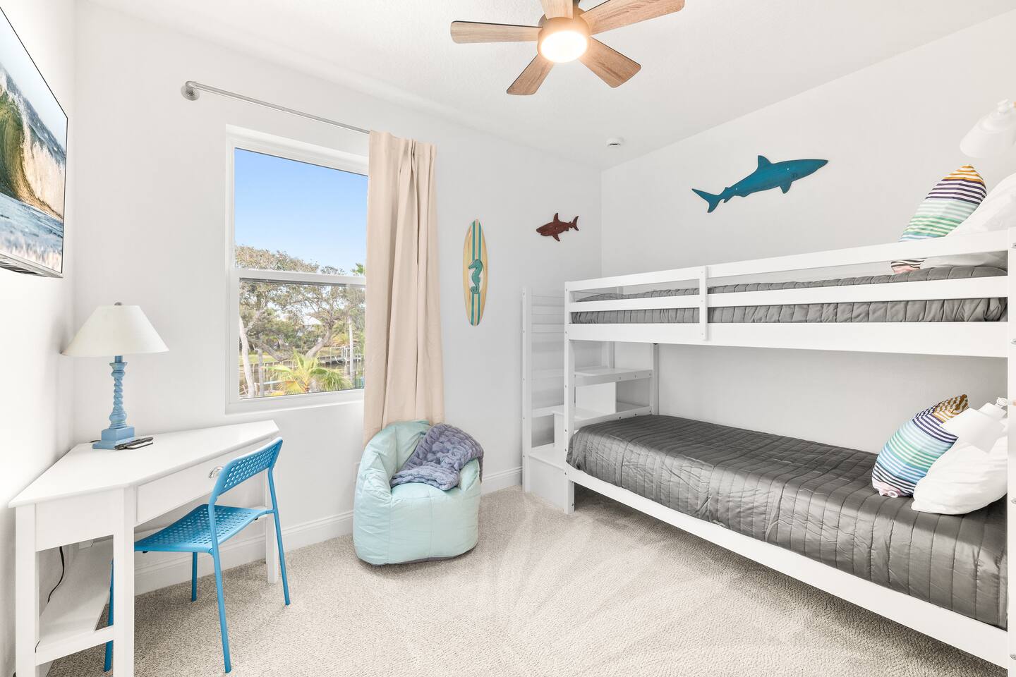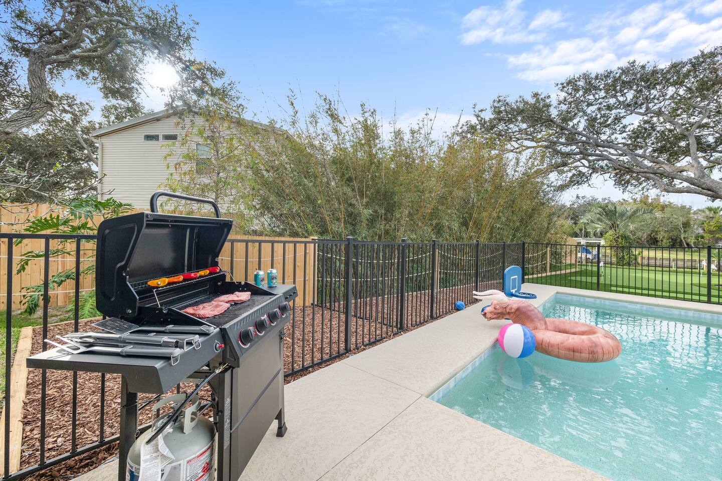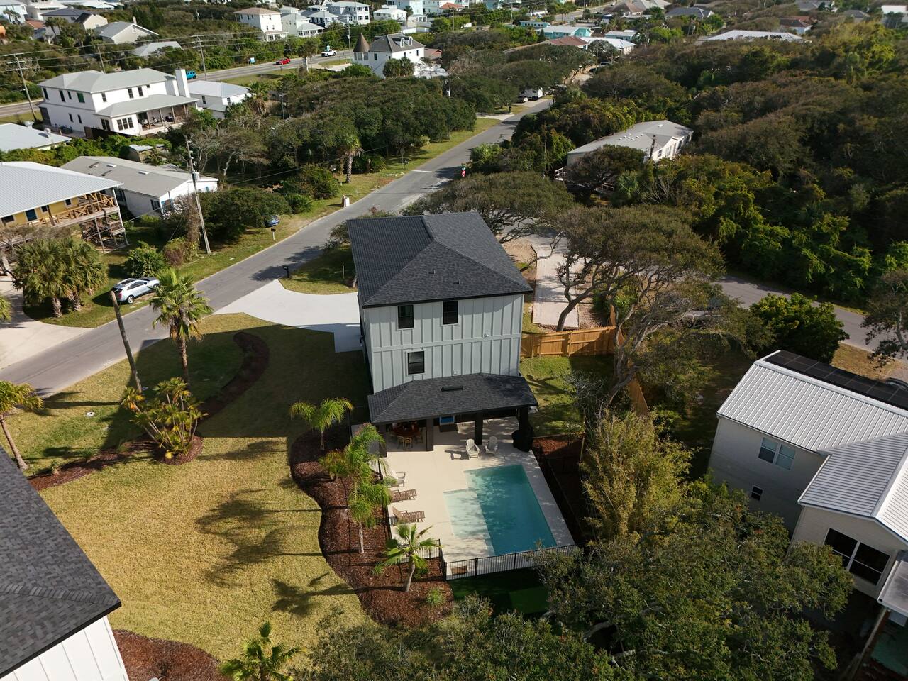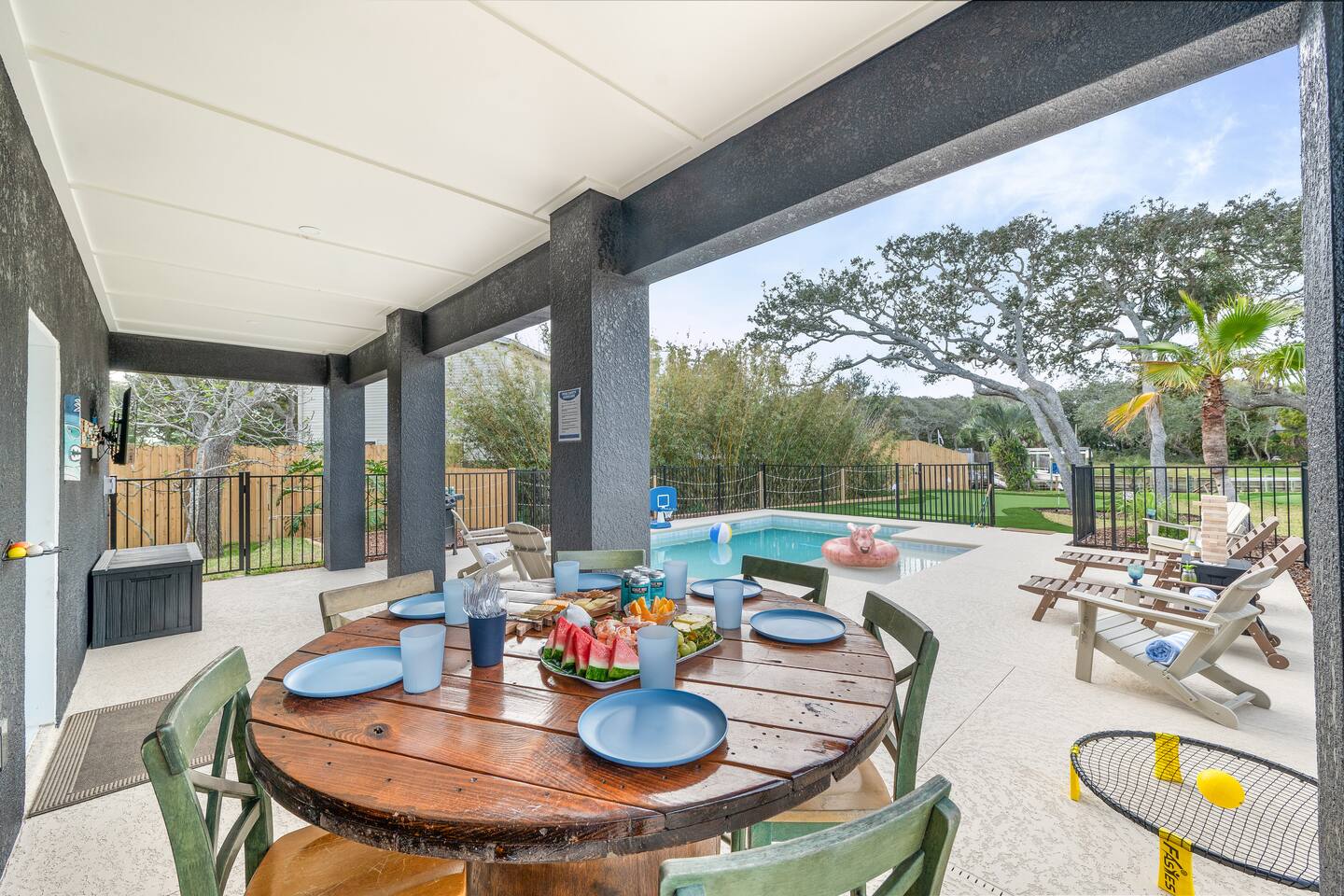 Start your mornings with salty ocean air and a quick five minute walk to Crescent Beach. Designed for laid back pool days, fun filled nights, and effortless beach living with family and friends. 🏠 4 Bed 4 Bath 🏖️ Private Saltwater Pool 🍹 Outdoor Lounge + Grill ⛳ Backyard Putt Putt 🐟 Canal Fishing 🏠 Elevator Access 🍽️ Two Kitchens 🐶 Dog Friendly 👶 Baby / Toddler Ready 🏖️ Beach Gear + Games 📶 Fast Wi Fi 🎲 Indoor Family Games Welcome to your coastal sanctuary, just moments from beautiful Crescent Beach. Portside Retreat blends comfort, fun, and effortless relaxation — whether you’re floating in the private saltwater pool, lounging in the outdoor TV area, or letting the kids run free in the fenced backyard. Inside, bright coastal design and thoughtful details create an inviting, easygoing vibe. Outside, you’ll find everything you need for unforgettable days in the sun — mini putt-putt challenges, beach gear, outdoor games, and plenty of space to gather. With room for up to ten guests, this home was built for memory-making. Whether you’re sipping morning coffee on the balcony or grilling under the palms at sunset, this is where your perfect beach vacation begins. ⸻ ▪️Inside the Retreat▪️ Living Areas • Two spacious living rooms designed for connection and comfort • Smart TVs for movies, game nights, or unwinding after the beach • Queen sleeper sofa downstairs adds extra sleeping space Kitchen & Dining • Fully stocked main kitchen with stainless appliances and island seating • Well-equipped kitchenette downstairs for poolside snacks and drinks • Everything you need to prepare family meals or quick bites before heading out Bedrooms • Primary Suite: King bed with ensuite bathroom • Bedroom 2: Queen bed, calming coastal style • Bedroom 3: Double bed, cozy and serene • Bedroom 4: Full-size bunk beds — a favorite for kids and teens • Bonus: Queen sleeper sofa on the lower level All rooms include plush bedding, smart TVs, and relaxing touches that make you feel instantly at home. Bathrooms • Four modern full bathrooms offering comfort and privacy • Primary ensuite with walk-in shower and tub • All stocked with shampoo, conditioner, body wash, and fluffy towels Elevator • For use from the 1st to the 3rd floor of this spacious retreat. May use stairs as well. ⸻ ▪️Outdoor Paradise▪️ • Private saltwater pool with loungers and floats • Covered outdoor TV lounge for relaxing days and cozy evenings • Backyard mini putt-putt course for all-ages fun • BBQ grill for easy outdoor dinners • Outdoor shower to rinse off after the beach • Fully fenced yard — perfect for kids and pups • Outdoor games including Jumbo Jenga, Spike Ball, boogie boards, beach toys, and umbrella • Steps from Crescent Beach in a peaceful, family-friendly neighborhood • Parking for five vehicles (two in the garage, three in the driveway) ⸻ ▪️Pet Policy▪️ We love hosting dogs. Up to two pups are welcome, any size. Please include them in your reservation details. ⸻ ▪️Family Ready▪️ • Pack ’n play • Baby gates • Highchair • Kids’ dinnerware Everything you need for a stress-free family getaway. ⸻ ▪️Attention to Detail▪️ ✔ Professionally cleaned before each stay ✔ High-speed Wi Fi & smart TVs ✔ Washer, dryer, iron, and board ✔ Premium linens for every guest ✔ Starter supply of essentials ✔ Coffee and basics ready on arrival ⸻ Your Stay at The Portside Retreat Awaits From sunrise beach walks to laughter-filled nights by the pool, The Portside Retreat is the perfect home base for families, groups, and anyone craving coastal comfort. Spacious, stylish, and steps from the sand — this is where unforgettable memories begin. Book your stay today and start your St. Augustine story. 🌅 Guest Access You’ll have full, private access to the entire home — no shared spaces, no interruptions. Enjoy the freedom to spread out and make yourself at home across all three levels. Our local team is just a message away if you need anything during your stay. Interaction with guest You’ll be fully taken care of by Jess and Mike with Triad Escapes Homes, a local husband-and-wife vacation management team who handle all guest communication, support, and logistics during your stay. We’re always just a text or call away if you need anything. While the homeowner, Catrina, loves this home dearly, she has entrusted us to make sure your experience is seamless from start to finish. You’ll receive all check-in details, local tips, and communication through the Airbnb messaging platform for your convenience.