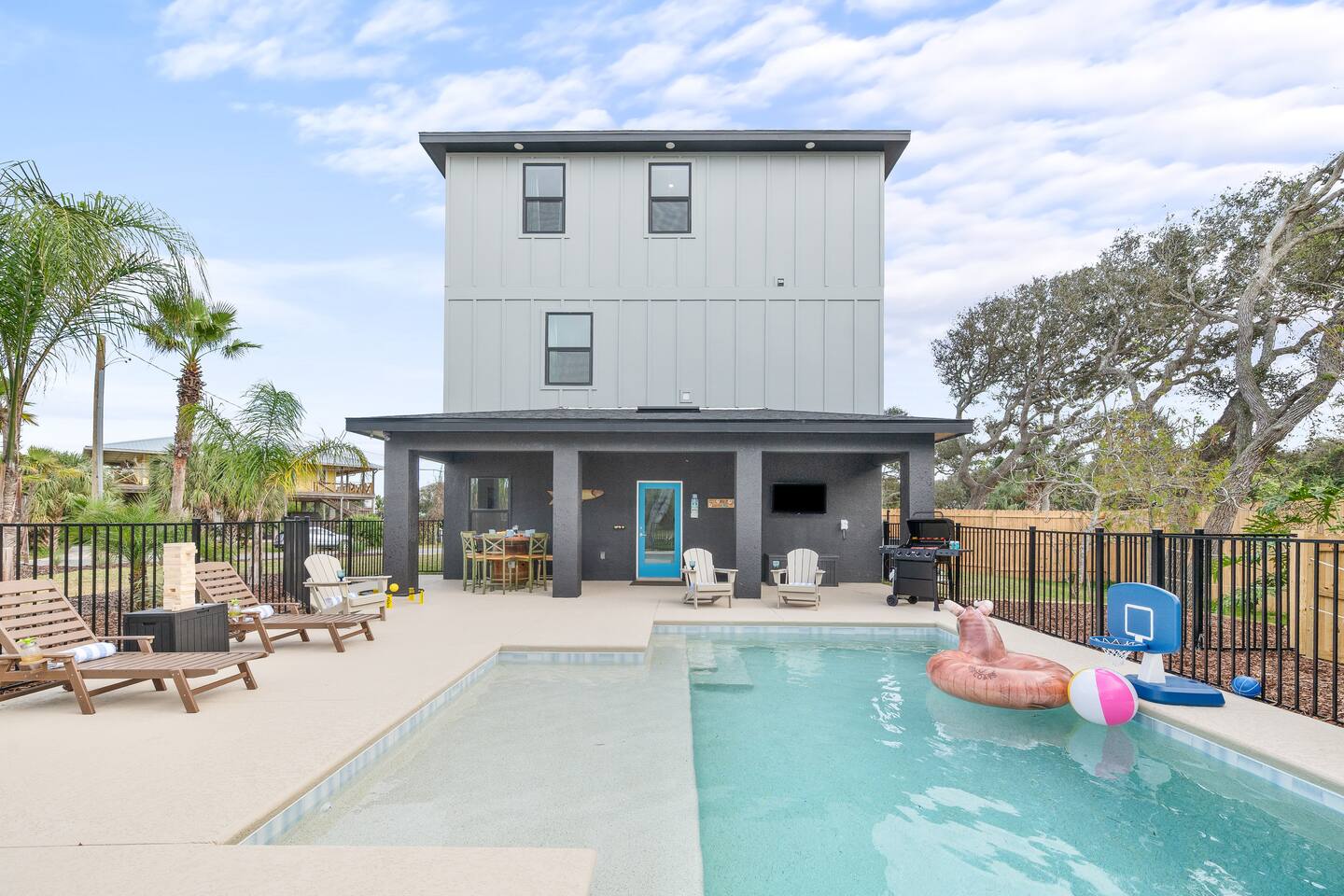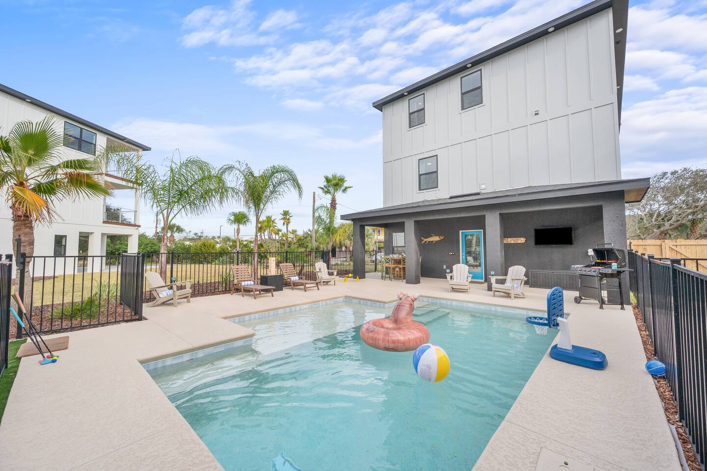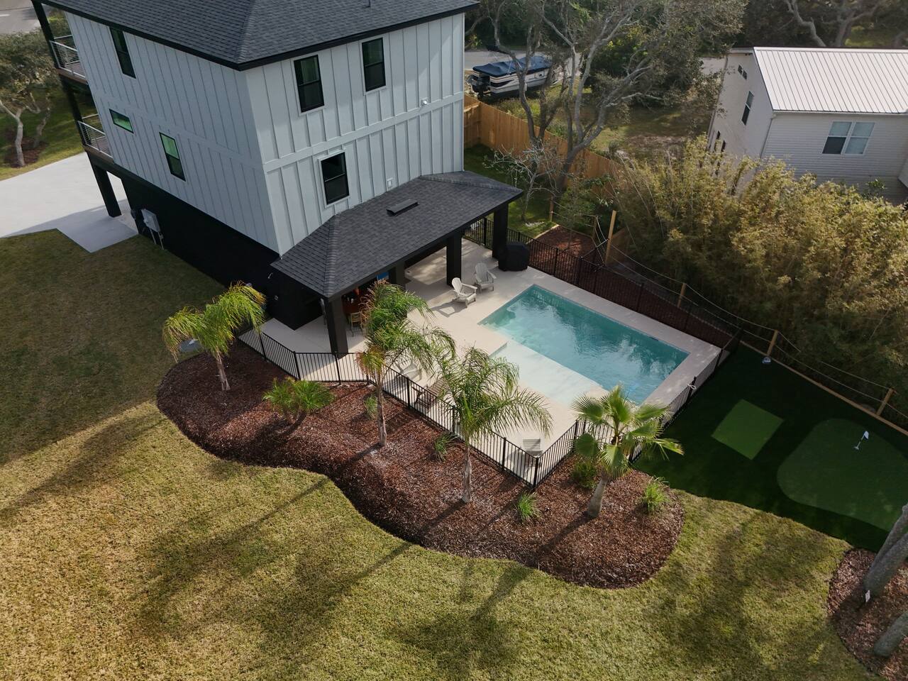 Welcome to The Portside Retreat — a stunning 3-story brand-new coastal getaway just steps from Crescent Beach! Enjoy a private saltwater pool, backyard putt-putt course, and elevator access for effortless living. With two kitchens, fast Wi-Fi, and spacious living areas, this pet- and kid-friendly haven blends boutique comfort with resort-style fun. Gather, unwind, and make memories where every sunrise feels like your own private beach escape.